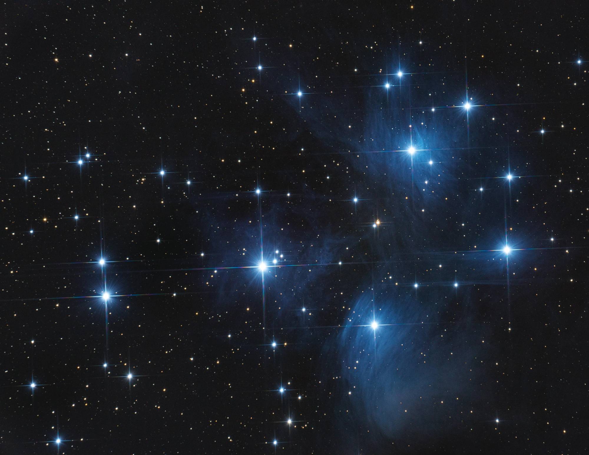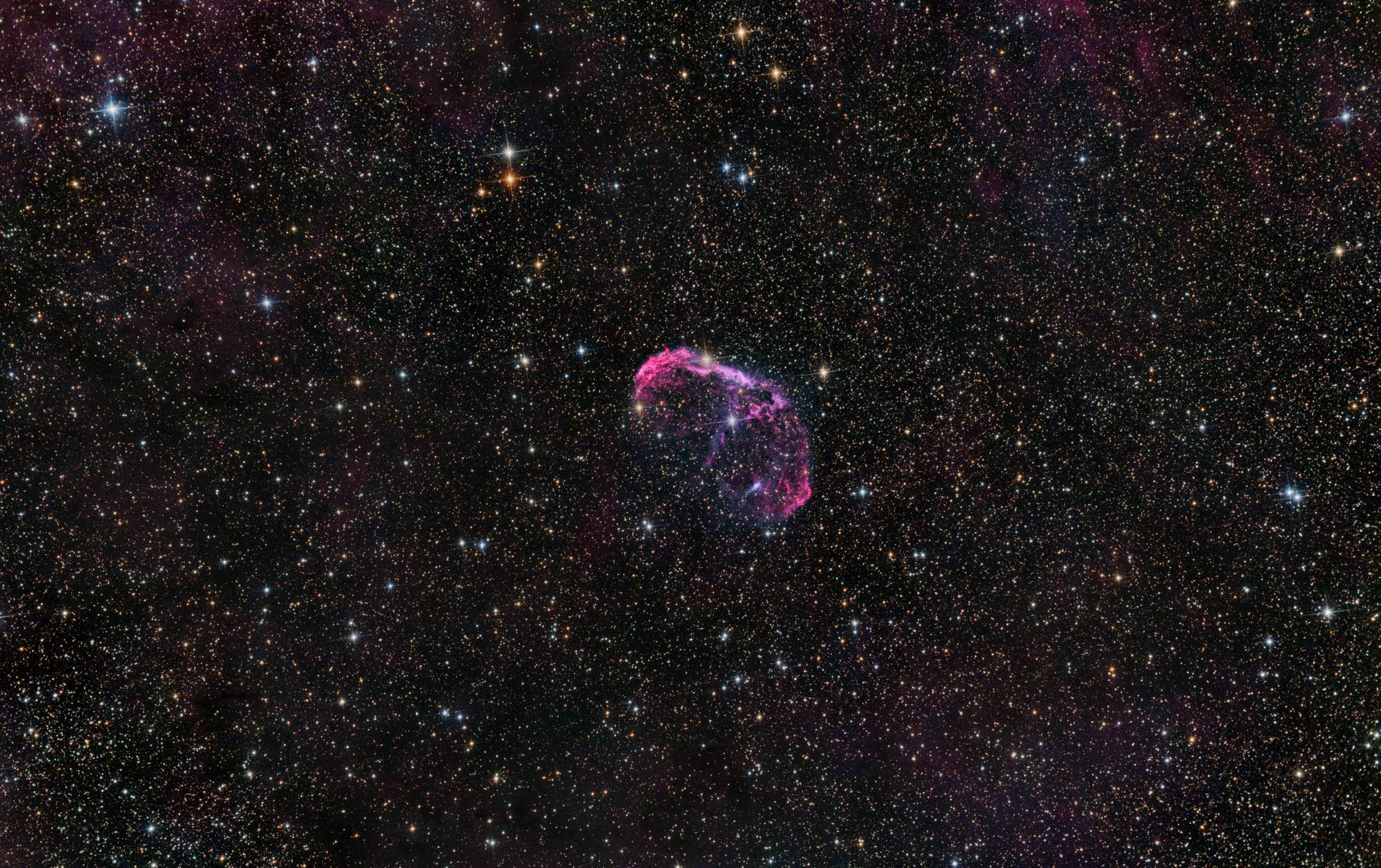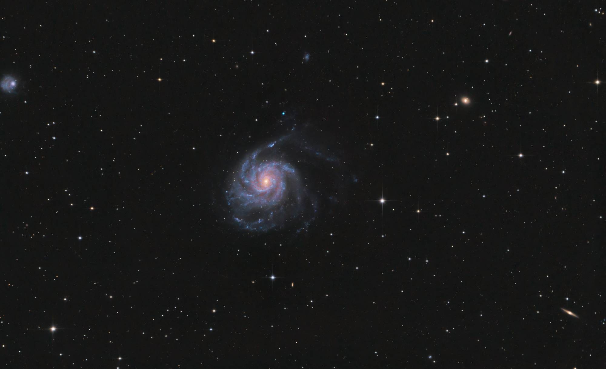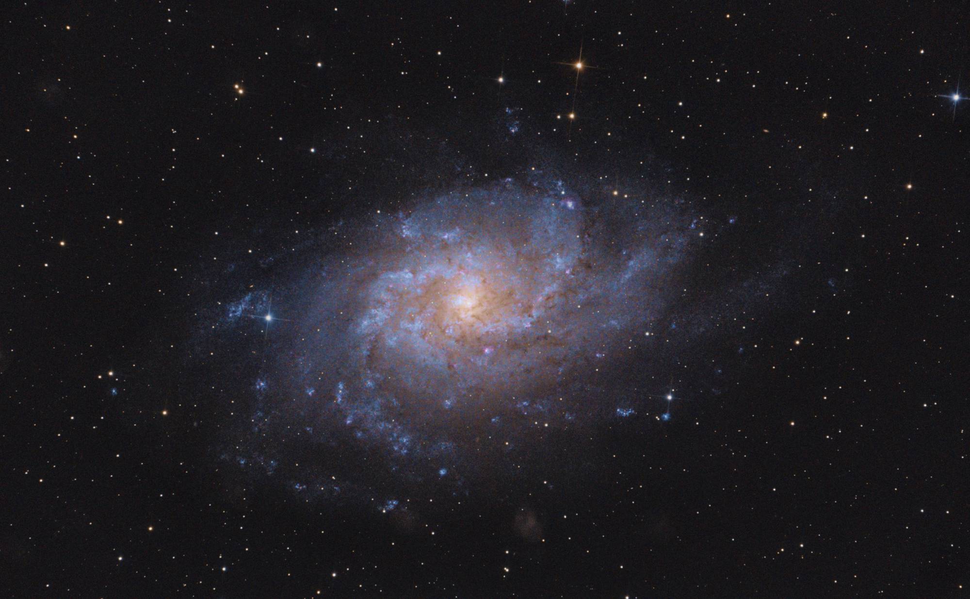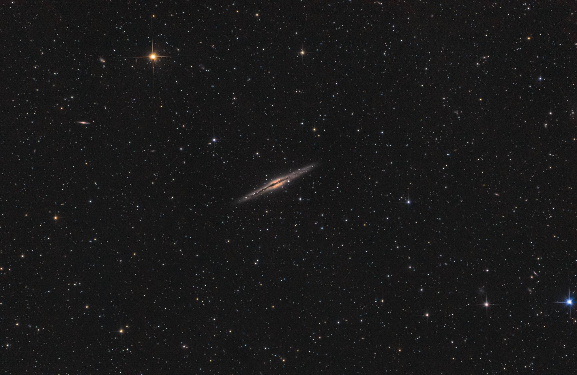 Mein Teleskop ist ein 8 Zoll Newton-Spiegelteleskop von Skywatcher, mit einer Brennweite von 1000mm und einer Blende von f/5. Das macht es relativ lichtstark für seine Größe. Dank des etwas breiteren Fangspiegels eignet es sich besonders gut für die Astrofotografie. Zusätzlich setze ich einen Komakorrektor von Baader ein, um die Sterne am Rand des Bildfelds zu korrigieren. Die Montierung ist eine Skywatcher EQ-6, die ich über einen Laptop steuere. Zum Guiding benutze ich ein Beroflex 300mm Objektiv. Als Software kommt APT (Astro Photography Tool), Stellarium, PHD2 und EQ-MOD zum Einsatz.