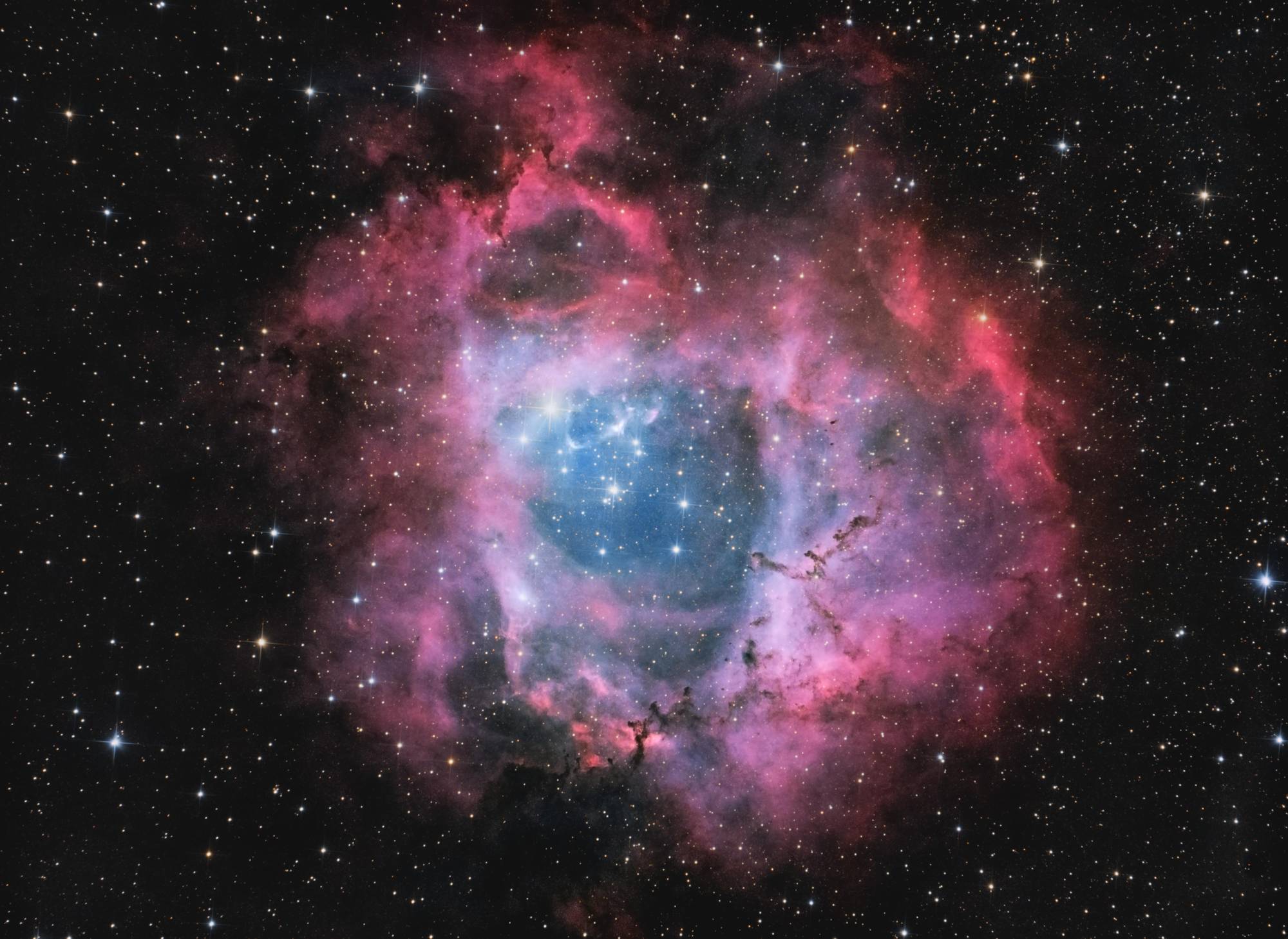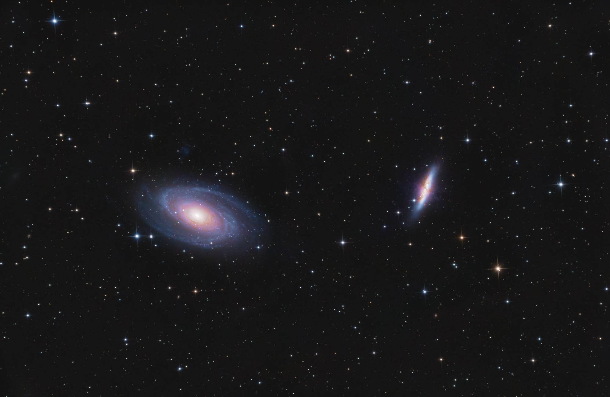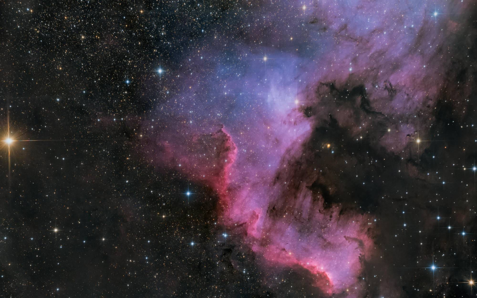 Für die meisten meiner Bilder nutze ich meine Nikon Z6II Vollformatkamera. Wenn es darum geht, kleinere Objekte wie Galaxien zu fotografieren, greife ich auf meine alte Nikon D5200 APSC-Kamera zurück. Beide Kameras sind nicht für die Astrofotografie modifiziert, was bedeutet, dass ich nur im sichtbaren Licht arbeiten kann und nicht im Infrarotbereich. Trotzdem gibt es viele faszinierende Objekte wie Galaxien, Sternhaufen und Reflexionsnebel, die im sichtbaren Spektrum genügend Licht für spektakuläre Aufnahmen emittieren. Zum Guiden und für Planetenaufnahmen verwende ich eine QHY 5L-II, eine Kamera, die speziell für diese Zwecke entwickelt wurde. Zum Stacken benutze ich APP (Astro Pixel Processor) und Adobe Photoshop.